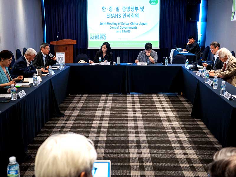 分科会終了後には、ERAHSで初めて公式な「中央政府会議」が開催されました。これは先般の日中韓農業大臣会合共同声明を受けて開催されたもので、3か国の中央政府間における農業遺産関連の今後の協力について友好的な雰囲気の中で議論が交わされ、今後もERAHSの場を活用してこの会議を継続的に開催していくことなどが合意されました。