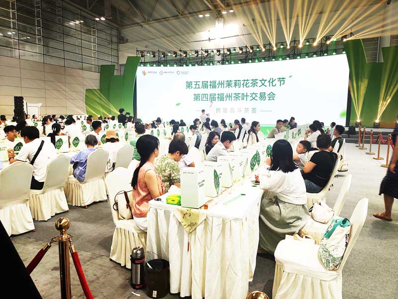 シンポジウム以外の行事としては、9月5日(金)の午前に「第五届福州茉莉花茶文化节和第四届福州茶叶交易会」(第5回福州ジャスミン茶文化祭及び第4回福州茶葉見本市)の開幕式への出席、9月6日(土)の午前に「五里亭茶城」というお茶関係の店舗が集積したビルの見学を行い、午後にはジャスミン茶の利き茶コンテストに参加しました。