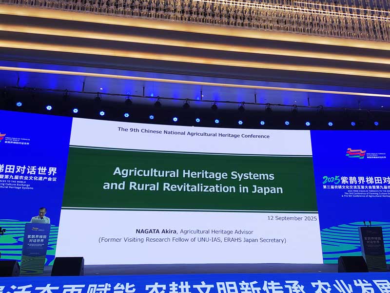 9月14~15日に中国湖南省新化県で国際機関の来賓、政府関係者、専門家、大学院生など約4百人が参加して、「2025紫鵲界棚田と世界との対話」をテーマに、第3回農耕文化交流学習大会及び第9回農業遺産文化会議が開催されました。ナビゲーターは、開幕式後の基調講演を行うために昨年に続いて今年も招待を受けました。